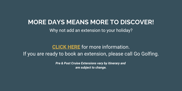 Go Golfing will make bookings at all scheduled golf courses on your behalf. In the event that ship itinerary changes, port closures or weather events impact our ability to play a course as scheduled, refunds are subject to the terms and conditions of golf clubs. Go Golfing will assist with requesting refunds, however will not be liable for any financial loss for cancelled golf rounds. Go Golfing will use best endeavours to make alternate golf bookings, however the guest will be responsible for any additional costs incurred. Go Golfing will assist with documentation for guests to make a travel insurance claim for any loss. Courses are subject to change if there are amendments to ship itinerary.